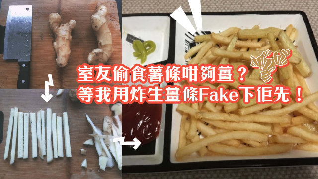 嗱你哋話嘞,成碟自製薯條畀人清晒又點會唔火滾先?所以呢位網民一於「你做初一,我做十五」,決定用炸生薑條嚟fake一fake佢個hihi roommate!咁夠薑偷食我啲薯條?等我炸返碟生薑條過你歎下啦!
