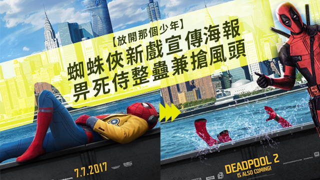 大家睇下,Spider-Man就咁畀Deadpool推咗落水,仲連下面句嘢都畀佢改埋做「Deadpool is also coming」,兼且連Avenger大樓都畀佢打咗個交叉?!唉Spider-Man哥哥,都叫咗你唔好咁寸㗎啦,好7呀!