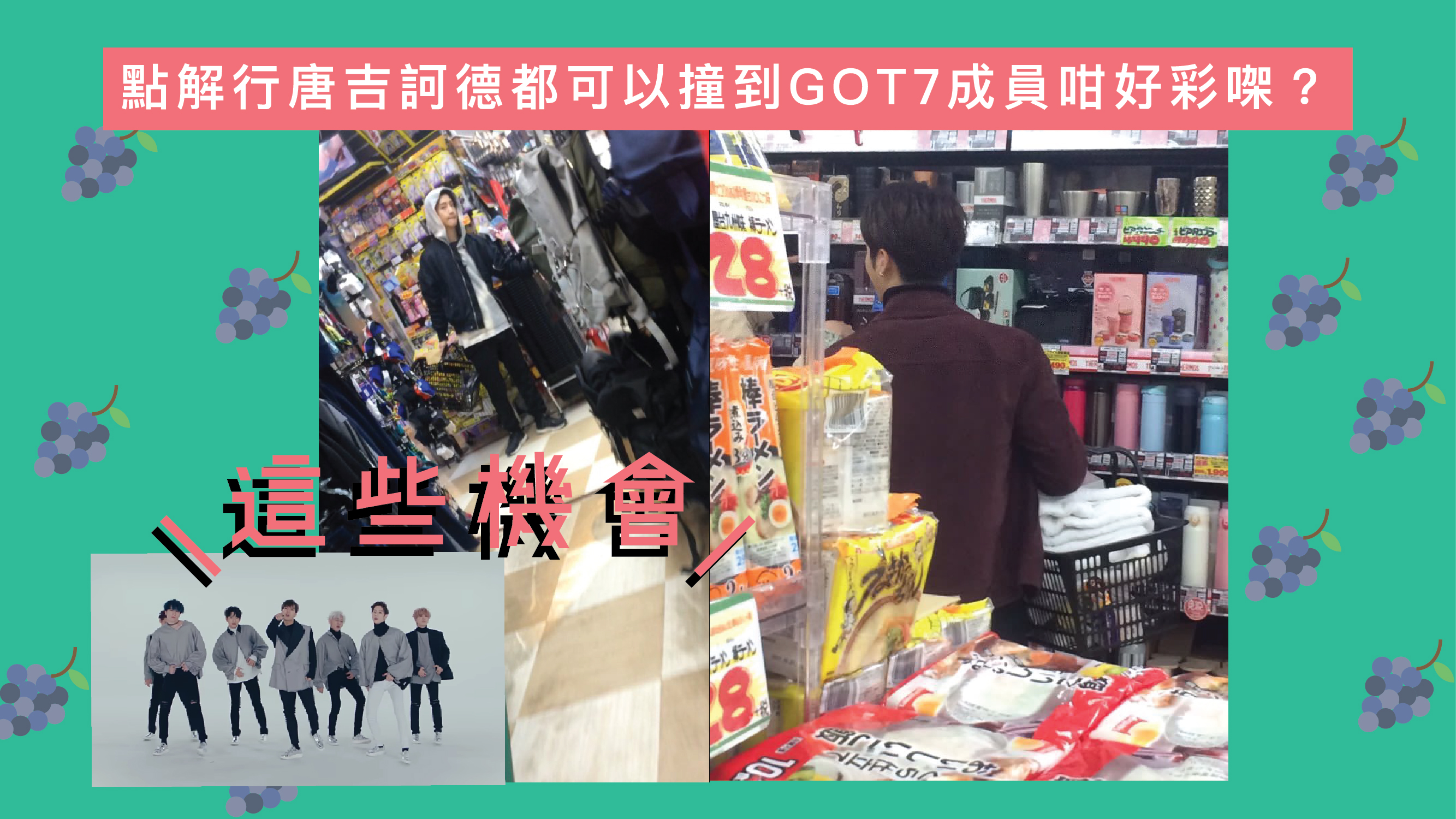 嗱,毛毛講緊嘅oppa之唔係GOT7囉!話說,最近有網民喺唐吉訶德中目黑本店濕濕下平嘅時候,突然發現前面有幾位哥哥仔好似熟口熟面咁,上前一睇⋯⋯原來呢幾位哥哥仔就係GOT7嘅成員嚟呀!