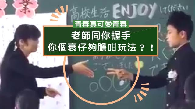 輪到呢位同學仔出嚟接畢業證書嘅時候,老師都伸出手想同佢握握手……