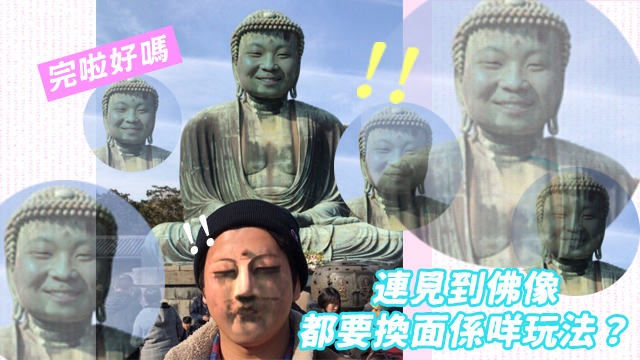 你睇,呢個哥哥仔嘅面相即刻幾咁慈祥呀,對眼朦豬得嚟又不失莊嚴,最緊要係連粒標誌性嘅家燕墨都不費吹灰之力咁換埋落自己度,真係有種法力大增嘅感覺呀!而身後嘅大佛都由嚴肅樣成功變做和藹可親嘅笑佛咁樣樣,真係雙贏呀!之前以為同Thomas換面已經冇得輸啦,點知原來同大佛換面都一樣咁神奇,睇嚟世上已經冇嘢可以阻止人類做無頭東宮㗎喇。