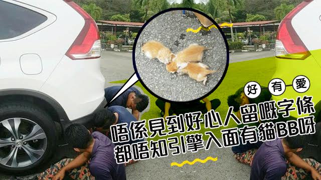 大家記住呀,就算你有冇車都好,都可以為街上嘅流浪貓仔出一分力,拍拍架車或者聽下有冇聲㗎!