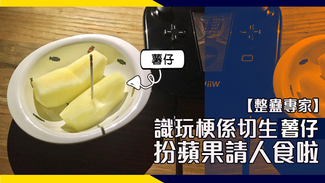 仲要批晒皮切好晒放喺碟仔度,等老婆打完機休息嗰陣食,真係好體貼呀~不過老婆食咗一啖之後⋯⋯_你個街呀,生薯仔嚟嘅喂!難得老公咁好心機又咁大工程切到個薯仔咁嘅樣,抵畀你玩嘅⋯⋯