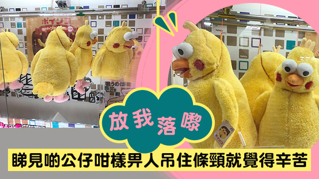 撞鬼咯!做咩一隻二隻「ポインコ」兄弟畀人吊住晒條頸㗎?家陣玩夾公仔定玩整燒味呀?唉,雖然佢哋個身黃黚黚,十足十燒味店啲油雞咁啫⋯⋯但其實佢哋唔係雞,係鸚鵡嚟㗎⋯⋯