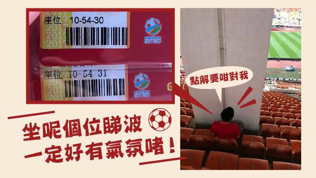 搵到喇,坐低先!喂,唔好意思呀,前面白色衫呢位先生,你都生得幾高大啵,可唔可以借一借呀,我唔止睇唔到個波呀,連個球場都望唔到喎……