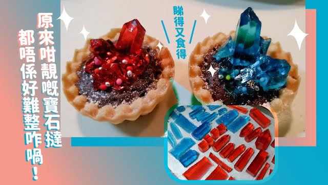 最後,將啲寶石放喺撻仔(買現成嘅咪得囉)上面,完成!啲寶石撻咁靚,肯定一拎出嚟個個同事都爭住食,仲影曬相post上網話唔捨得你,突然同你好老死咁?呀~