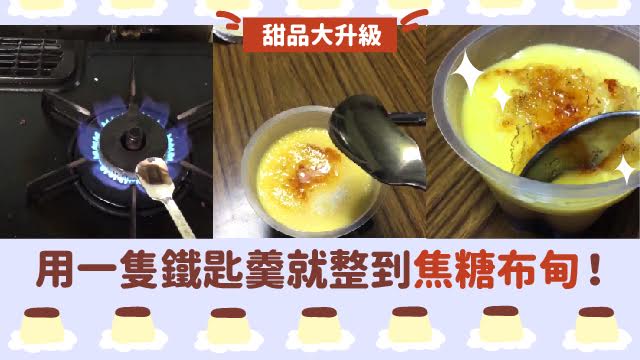 燈燈燈凳!一分鐘都唔使,你就已經成功將一個十幾蚊嘅雞蛋布甸升級做幾十蚊嘅焦糖布甸喇,caption記得寫法文「Crème brûlée」呀,係咪即刻high class曬呢!