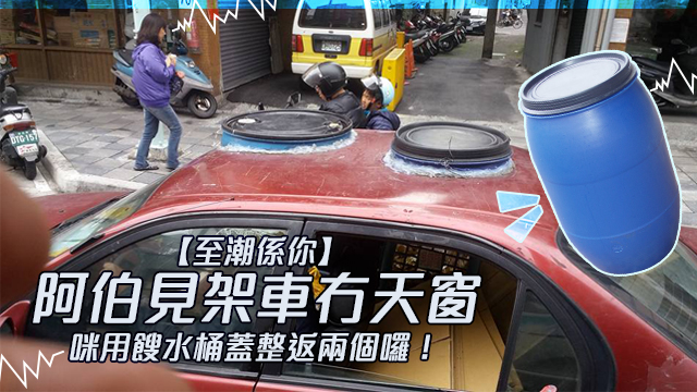 阿伯話,天窗嚟㗎!架車冇天窗,阿伯咪?開車頂再黐兩個餿水桶蓋上去,咁打開咪天窗囉~落雨冚返個蓋就得喇,真係既方便又快捷呀!