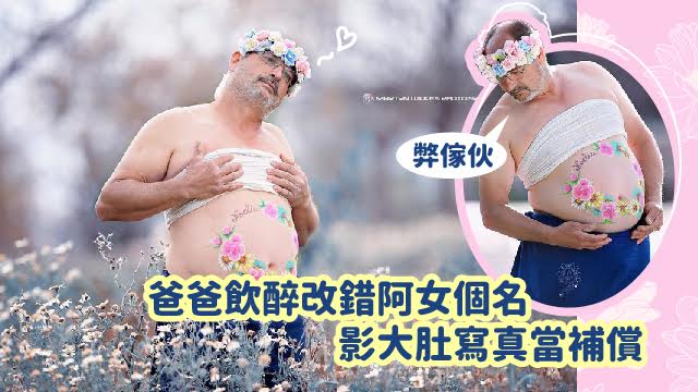 阿女家陣都廿幾歲喇,都一直用緊個錯嘅名,佢有冇介意都好啦,老竇就一直將當年呢件事放喺心度,最近仲影咗呢輯大肚(腩)寫真送畀老婆當係補償。