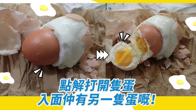 嗱嗱嗱,如果你以為佢只係大隻啲嘅蛋咁就錯曬喇!日本北九州市農業中心話佢哋將隻大蛋烚熟再打開之後,先發現原來蛋中有蛋呀!沙律醬都準備埋你畀啲咁嘅嘢我?不過諗諗下,入面隻蛋個穀又冇掂過外面,即係冇雞sss啦,面嗰層雞蛋可以放心食用!唔怕唔怕!