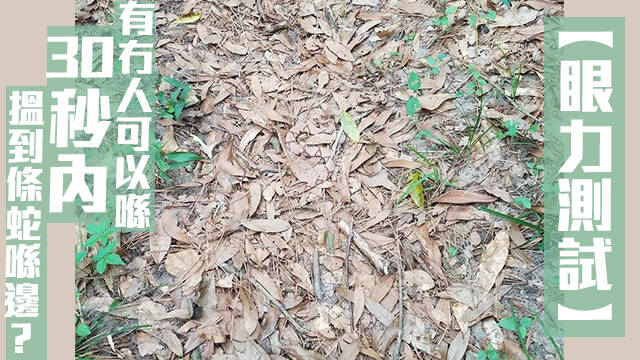 話說,最近唔少外國網民都瘋傳緊一張相,話upload呢張相嘅網民想問下大家搵唔搵到相入面條蛇喎⋯⋯下?張相入面淨係得啲枯葉呀、樹枝呀、沙石呀咁咋喎,乜張相入面真係有條蛇喺度咩?事不宜遲,而家就等大家嚟挑戰一下呢個眼力測試啦!