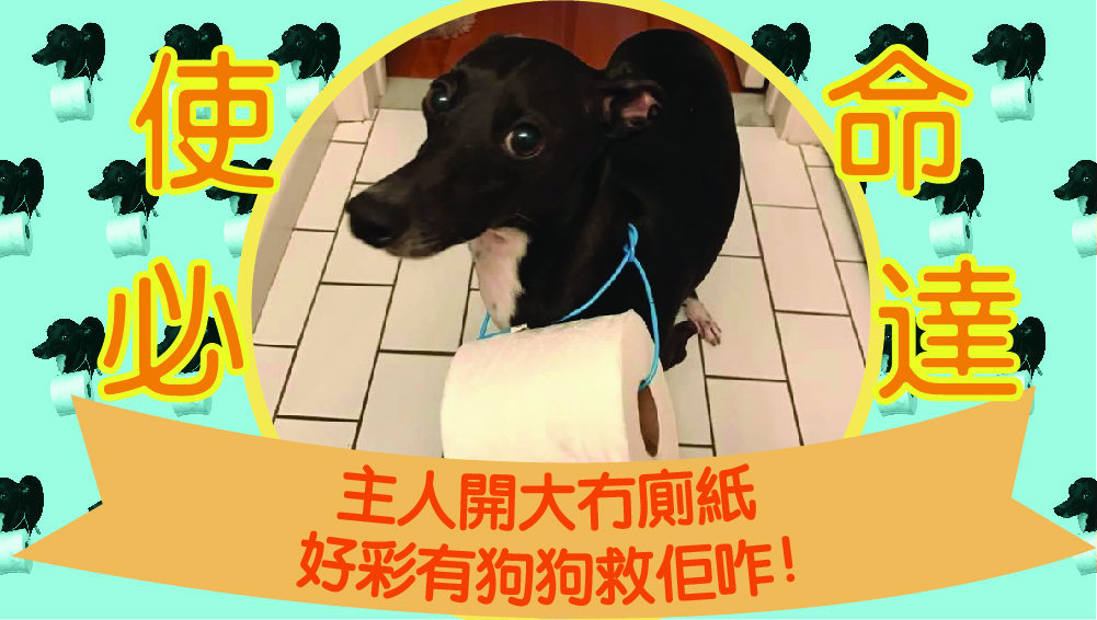 唔使驚, 狗狗喺大廳!好彩男友一呼喚女友隻狗,狗狗即刻衝上嚟搵佢,男友掛完嚿廁紙上狗狗條頸,妹豬再叫狗狗搵佢。就係咁,汪星人就成功速遞咗嚿廁紙畀主人,拯救佢出sss坑喇!