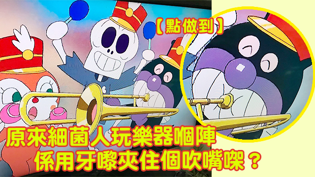 通常嚟講,大家玩吹奏樂器嘅時候都係用嘴唇貼住吹嘴,然後吹氣,再帶動管身入面嘅空氣震動,咁先可以發到聲嘅(google大神係咁講)。不過有眼利嘅日本網民就發現,原來《麵包超人》入面嘅細菌人玩吹奏樂器嗰陣就好似同大家有啲唔同咁啵⋯⋯
