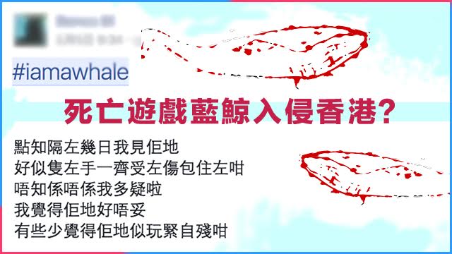 前日,喺Facebook page「名校 Secrets」有學生話最近見到有三個朋友都post咗「#iamawhale」呢個hashtag,但問佢哋呢句說話有咩意思嘅時候,佢哋只係懶神秘唔肯講。點知隔咗幾日,就見到呢三個朋友嘅左手都不約而同咁包紥住,好似受咗傷咁,所以認為佢哋玩緊自殘。有唔少網民都認為呢三個朋友進行緊藍鯨嘅自殘任務,好擔心佢哋最後會出事。