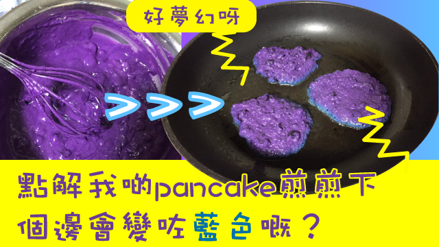 有網民就話喎,原來塊pancake會變色係因為加落去嗰隻漿果含有花青素,花青素會因為pH值唔同而改變顏色,所以而家花青素遇上整pancake時會用到嘅發粉咪變咗做藍色囉。