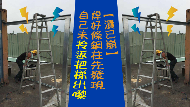 話說,最近有台灣網民就喺facebook post咗張相,話有職安真漢子焊好咗條鋼柱先發現自己原來未拎返把梯出嚟喎!