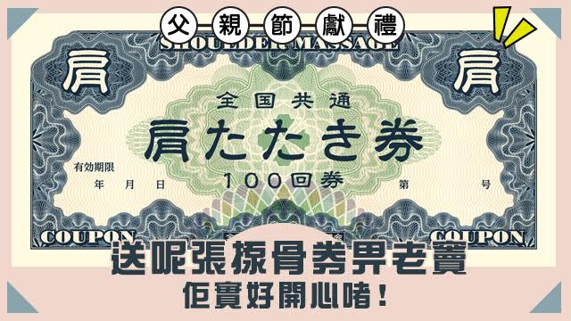 母親節有送禮物畀媽咪,冇理由父親節又唔送嘢畀老竇咁大細超嘅。相信唔少人細個嗰陣都都親手畫過揼骨券畀爸爸㗎喇,真係經典中嘅經典嚟呀!送禮物冇話一定要送貴嘢先叫孝順嘅,老套啲都要講句,物輕情義重吖嘛。