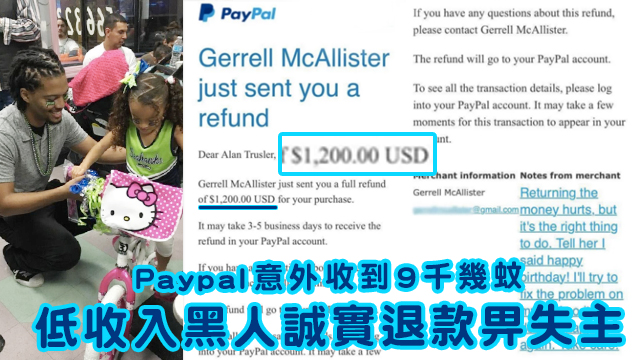 其實Gerrell係一個低收入人士,湊住個5歲嘅囡囡,Gerrell媽媽仲要冇幾耐之前過咗身咋⋯⋯退款之後,Gerrell亦都冇要求啲咩回報,只係希望對方可以分享呢個故事出去。