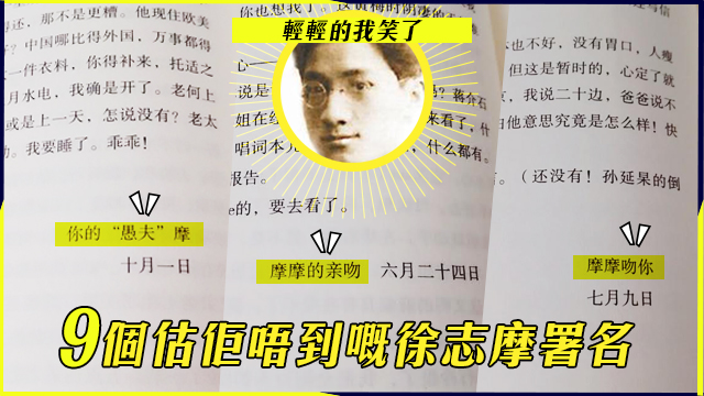 但係,如果當時老師話畀毛毛知原來徐志摩係一個好幽默嘅詩人,毛毛實唔會再瞓著啫!最近有網民睇《愛眉小札》呢本徐志摩同老婆陸小曼嘅情書合集之後,發現原來徐志摩對住老婆仔,都有又搞笑又大細路嘅一面㗎!「你的丈夫摩」、「你的親摩」呢啲署名都係濕濕碎咋!