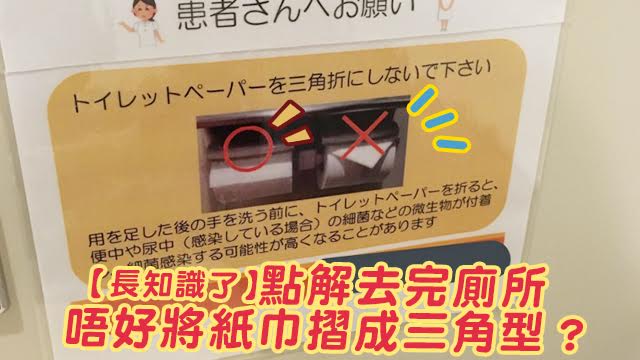 醫院貼告示提醒大家,唔好再手多多將紙巾摺成三角型,因為大家喺廁格嘅時候即係仲未洗手啦,容乜易將手上嘅細菌帶咗落未用嘅廁紙度,好心做壞事㗎?