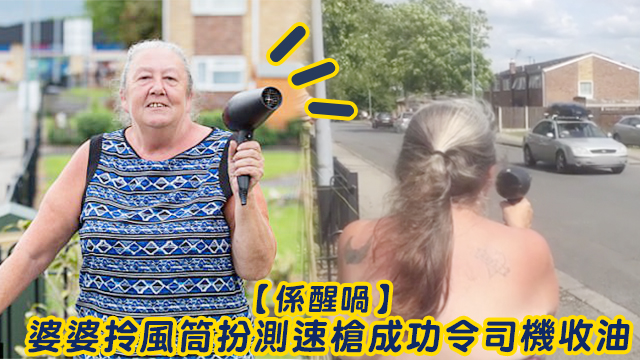 原來阿婆見之前法國有人用風筒扮測速槍,咁佢咪有樣學樣,睇下拎住把風筒對住啲車,啲車會唔會減速囉~點知真係有咁多傻豬豬一見到阿婆個風筒即刻減速呀!