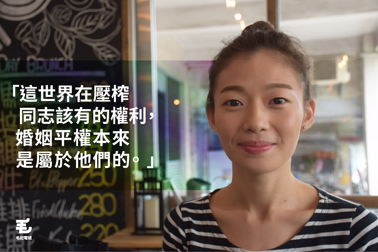 毛毛於是深入台灣,為同性婚姻議題進行小探究,搵咗台南嘅Ginny,請她用同志嘅身分,講下對同志平權嘅睇法。