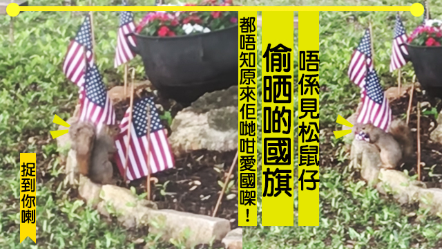 見到偷國旗嘅係兩隻松鼠仔,呢位老兵個心都定啲~原來鋼牙同大鼻偷咗成十面國旗,都係用嚟整個安樂窩啫~你哋咁愛國,相信個老兵都唔捨得罰你哋啦!