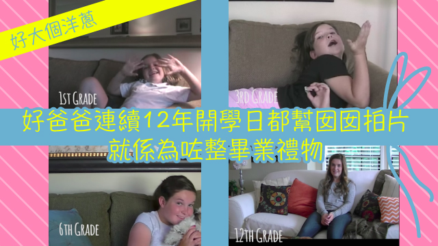 美國呢個廿四孝爸爸由阿女Mackenzie返小一嗰年開始,就每年開學日都會幫佢拍片,訪問下佢當日心情點樣,返學有咩好玩,連續拍咗12年,拍到今年阿女18歲高中畢業,就剪埋一齊,將呢條成長記錄片送畀佢當係畢業禮物喇!
