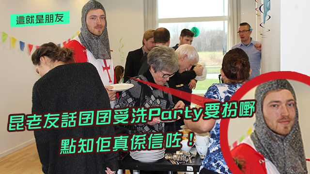 不過估唔到,外國有位仁兄為咗整蠱老友,連阿仔都畀佢擺埋上枱呀!點解呢位阿哥無啦啦會著到中古騎士咁㗎呢?是咁的,咁外國小朋友好多都會細細個受洗,仲會開Party慶祝?!於是早幾個禮拜網友同死黨飲嘢嗰陣,就話同死黨講想幫個仔搞個扮嘢受洗Party嘞。