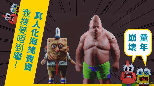 嗚哇,咁嘅樣嘅海綿寶寶,毛毛接受唔到囉!唔知仲以為係睇緊百變星君呀⋯⋯國字面型都冇理由國成咁下化!仲要學人三點盡露呀!你諗咗去邊呀,露咗三粒暗瘡坑咋。